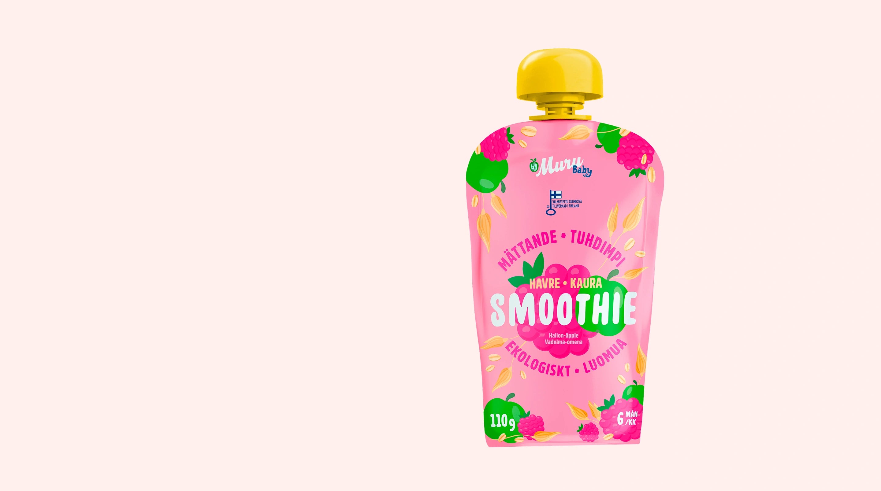 Käytämme vain 100 % luomuraaka-aineita – hedelmiä, marjoja, kasviksia, kauraa ja lihaa. Ei lisättyä sokeria, ei lisäaineita, ei keinotekoisia makuja tai täyteaineita. Vain aitoja, puhtaita ja laadukkaita raaka-aineita, jotka sopivat pienille herkkusuille.