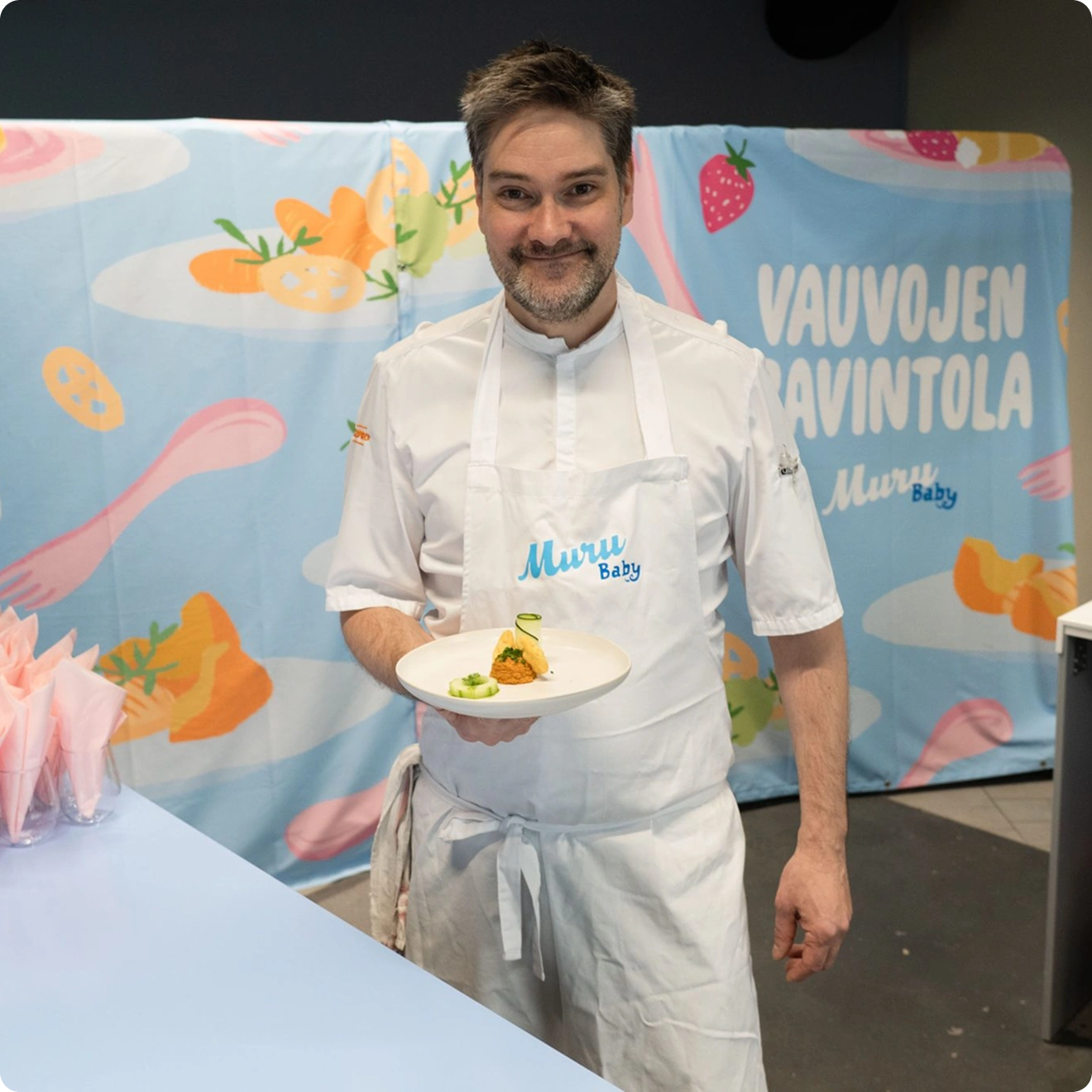 Vauvatkin ansaitsevat syödä herkullista ruokaa. Ja mikä sen selvempi paikka syödä tavallista paremman makuista ruokaa kuin ravintola. Perustetiin siis kauppakeskus Rediin muutaman päivän ajaksi pop-up ravintola, jonka tarkoitus olisi tuoda vauvat ja heidän ruokansa ensimmäistä kertaa ihmiskunnan historiassa ravintolan keskiöön. Tarjolla oli hienoa vauvoille suunniteltua ravintolatunnelmaa sekä Muru Babyn tuotteisiin pohjautuva kolmen ruokalajin menu, jonka Michelin-kokki Henri Alén oli itse suunnitellut.