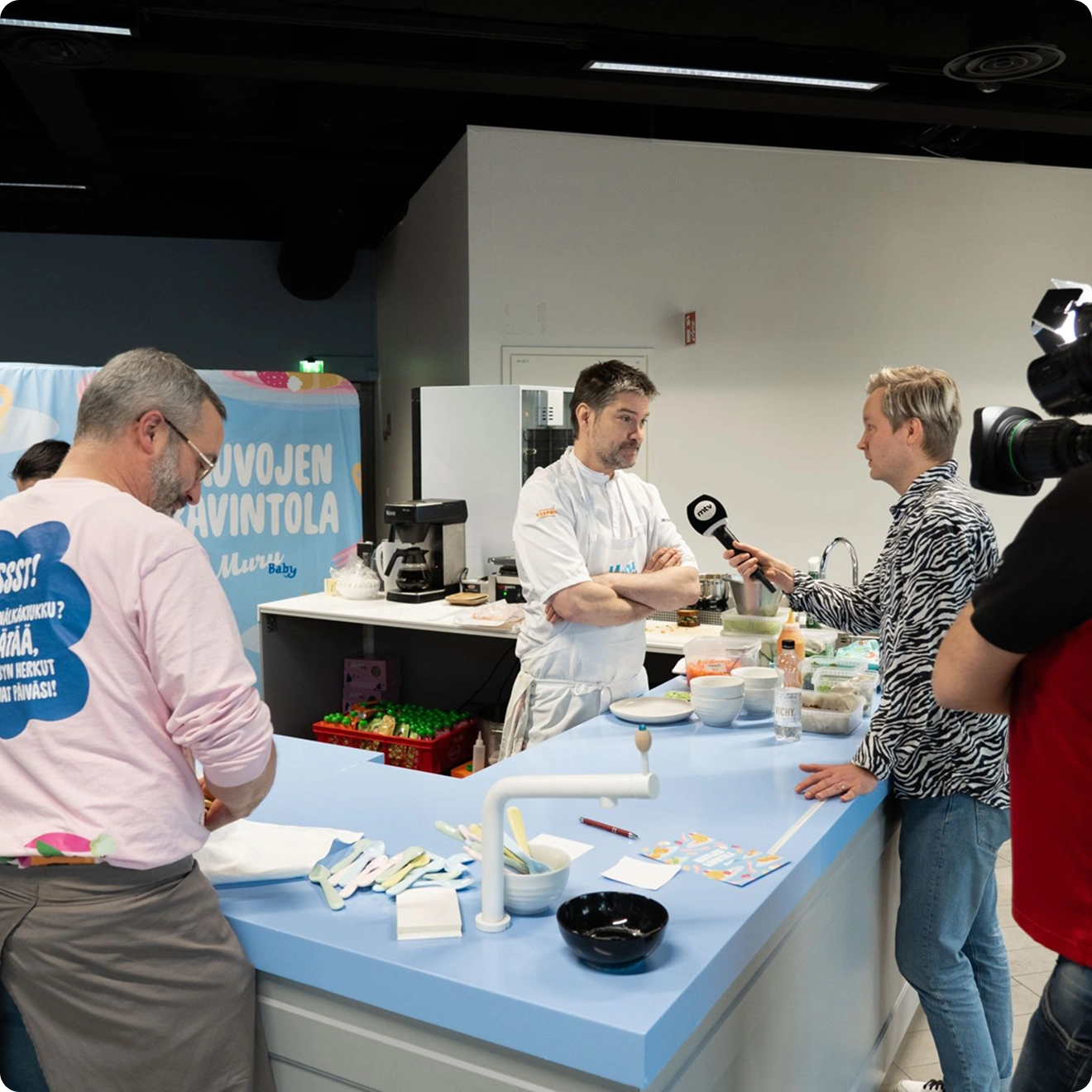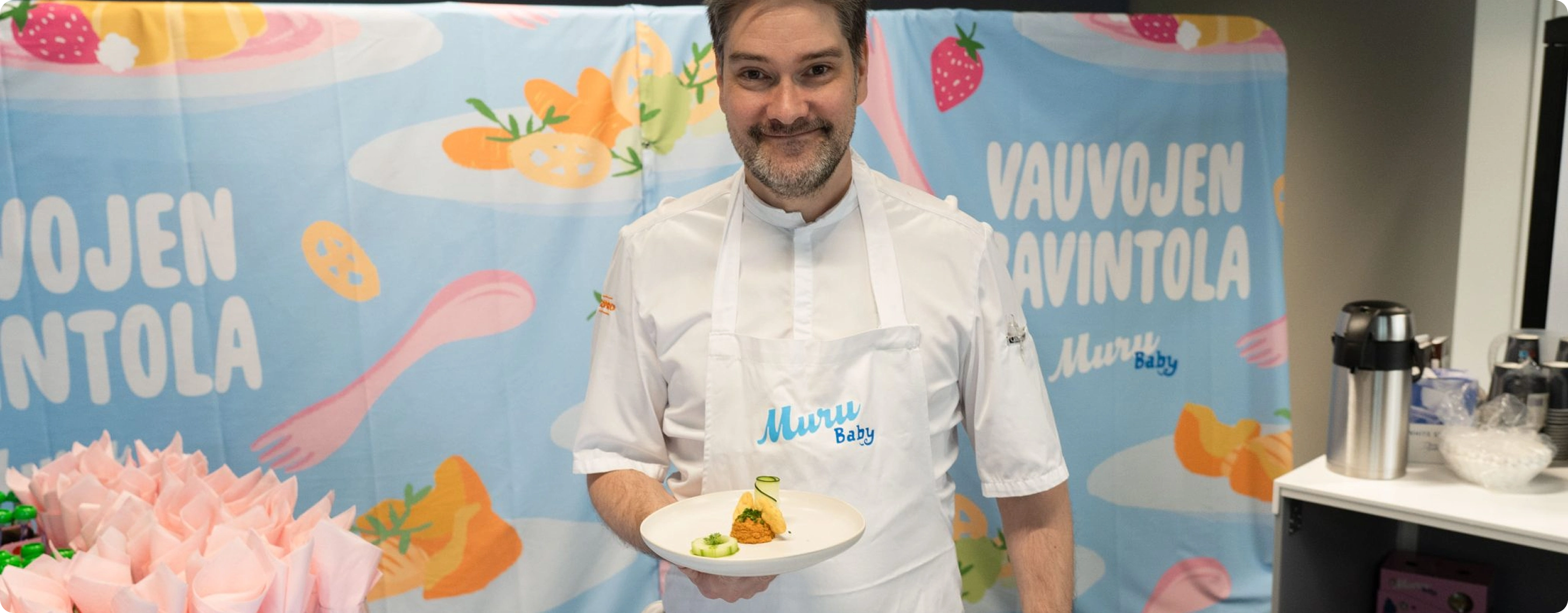 Vauvatkin ansaitsevat syödä herkullista ruokaa. Ja mikä sen selvempi paikka syödä tavallista paremman makuista ruokaa kuin ravintola. Perustetiin siis kauppakeskus Rediin muutaman päivän ajaksi pop-up ravintola, jonka tarkoitus olisi tuoda vauvat ja heidän ruokansa ensimmäistä kertaa ihmiskunnan historiassa ravintolan keskiöön. Tarjolla oli hienoa vauvoille suunniteltua ravintolatunnelmaa sekä Muru Babyn tuotteisiin pohjautuva kolmen ruokalajin menu, jonka Michelin-kokki Henri Alén oli itse suunnitellut.